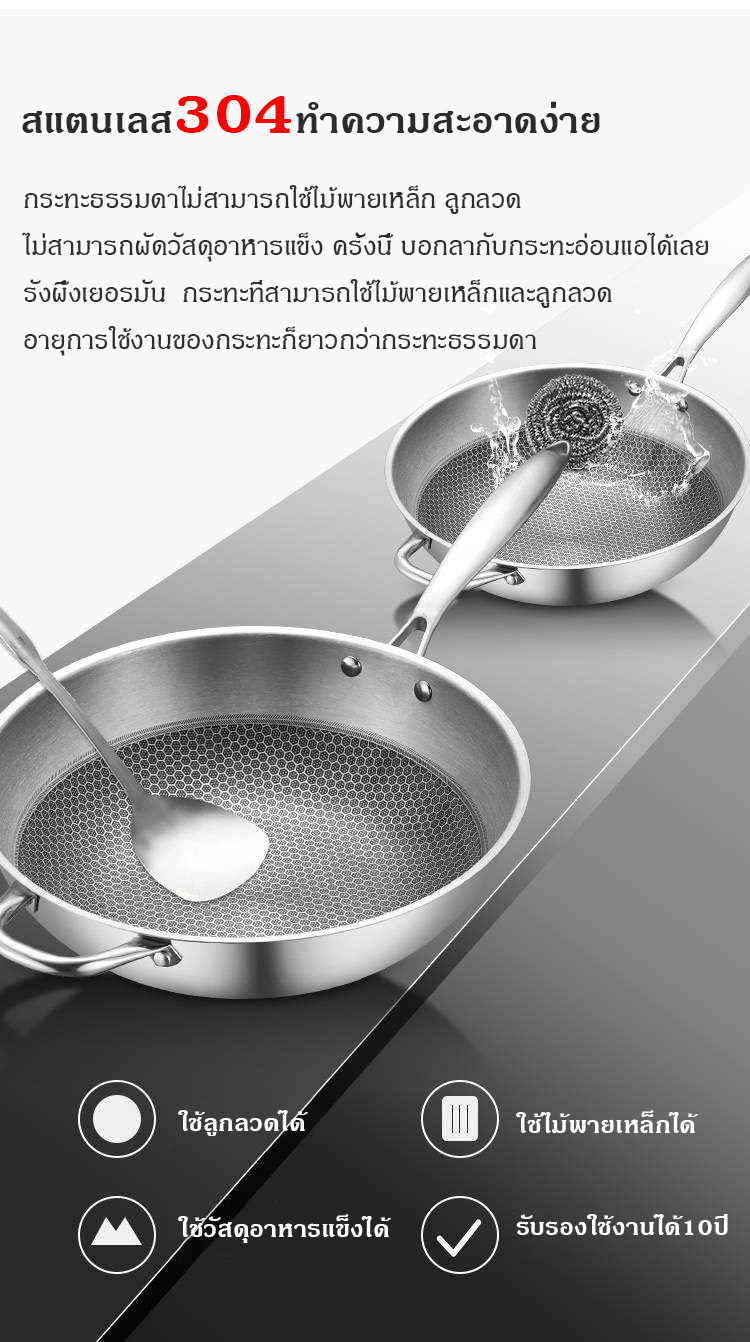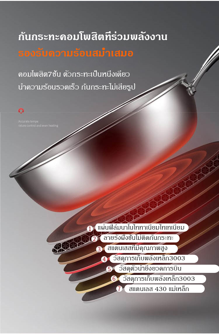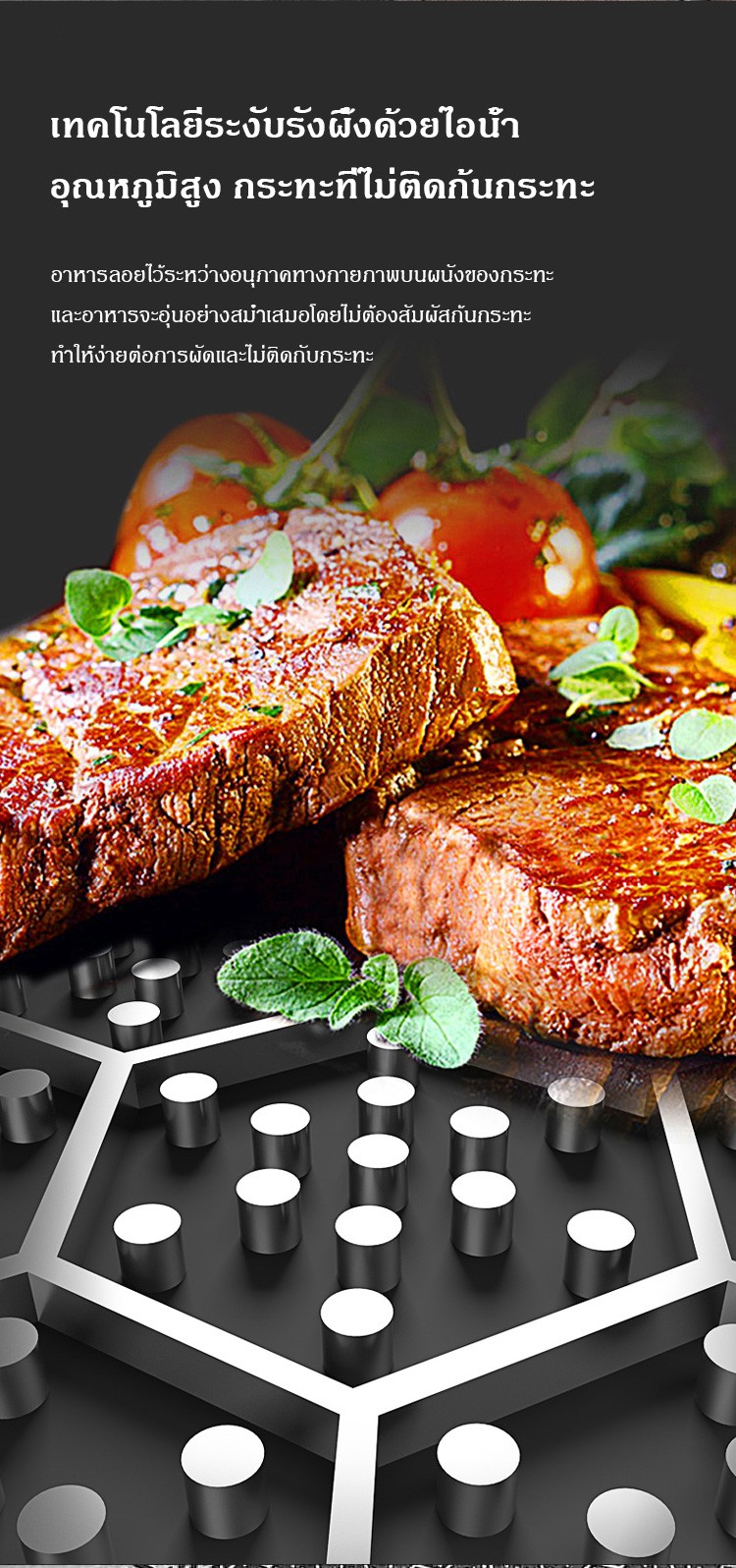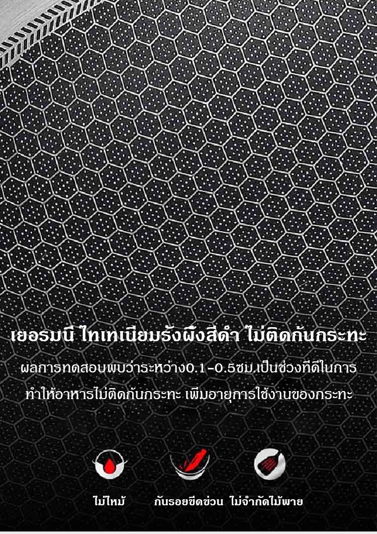 จากเยอรมัน ข้อเลือกจากเชฟ กระทะคุณภาพสูง นอนสติ๊ก ไม่มีควันน้ำมัน. ประสิทธิภาพการถ่ายเทความร้อนสูงกว่า 90% ช่วยประหยัดแก๊ส ใช้หม้อที่ดีและทำอาหารที่ดี เพลิดเพลินกับชีวิตใหม่ของอาหารที่ดีต่อสุขภาพ