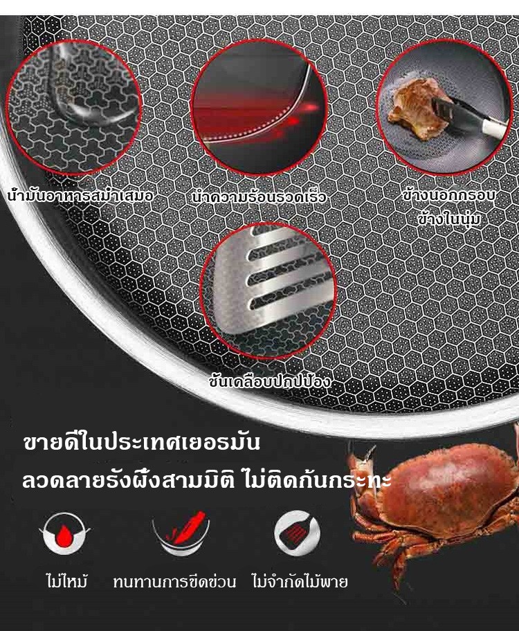 ขายดีในประเทศเยอรมนี กระทะสามมิติ ลายรังผึ้งแบบไม่ติดก้นกระทะ